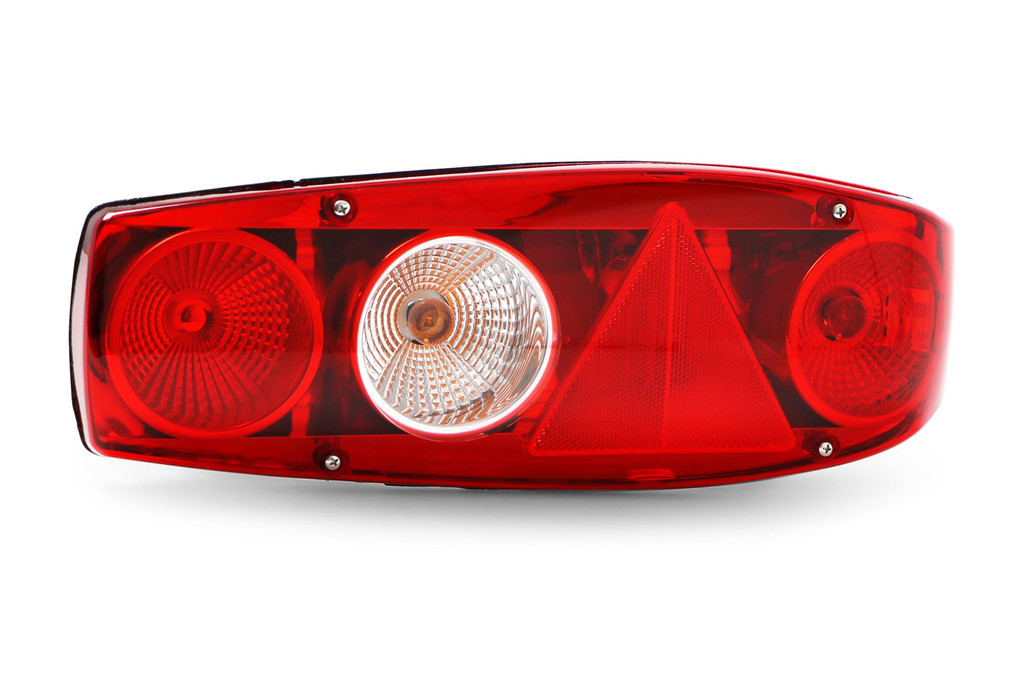 Rear light for Caravan:- Rear light for horizontal fastening with 5 light functions (with reflector; with side marker light; with indicator; with stop light; with taillight; without fog light function)